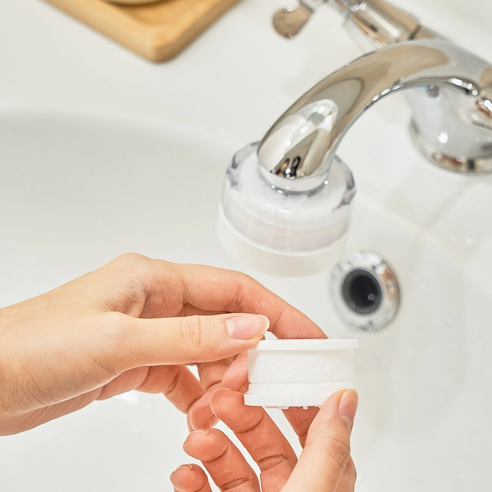 Make water the foundation of your skincare routine. With vitamin C, Re:vita filter removes 99.9% of residual chlorine and chloramine. Moreover, the layered vitamin complex, consisting of vitamin E for skin protection, vitamin B3 for skin whitening, vitamin B5 for skin moisturizing, and vitamin B7 for scalp nutrition, helps revitalize your skin, leaving healthy and clean.